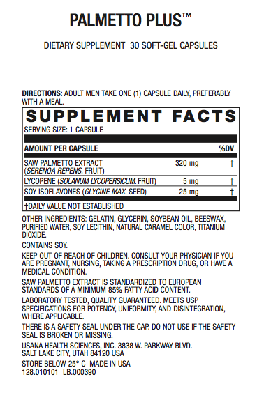 USANA is one of only a few major manufacturers to combine saw palmetto with lycopene and soy isoflavones in a single product. palmetto plus is a convenient, effective way to obtain a comprehensive men’s health formulation at a reasonable price.*