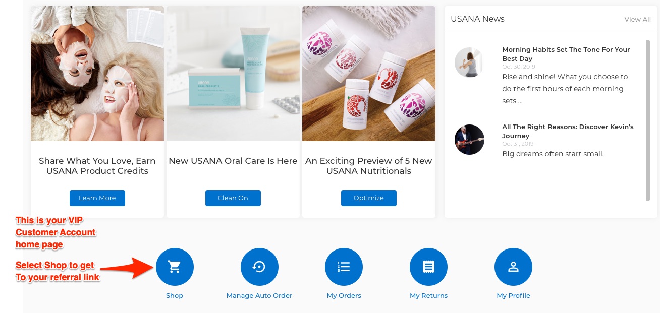 USANA's Refer a Friend program rewards you for sharing USANA products with your friends and family. Set up your USANA VIP customer account to get your personalized USANA product link to share. Each time your friend or family member places an order using your personal USANA share link, USANA's Refer a Friend program gives you 10 percent of their total product amount in USANA product credits to use on your future purchases. And the best part—you’re automatically linked to every order—which means you get credit whenever your friends or family make repeat purchases. **If you don't have a USANA VIP Customer account then create one here.